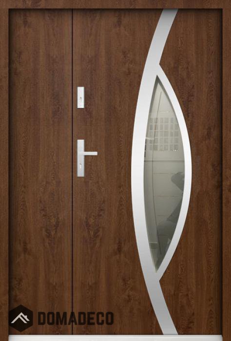 La puerta está hecha de acero inoxidable. En su interior está rellena de espuma de poliuretano PUR y madera. El grosor de la hoja de la puerta es de 55 mm. Posee un Sistema de Sellado Doble: Un sello se encuentra en la parte superior del marco y el otro en la parte de soporte de la hoja de la puerta. Reducen la vibración y protegen su casa de la pérdida de calor. No cambian su volumen bajo la influencia de las condiciones atmosféricas. El marco de la puerta tiene refuerzos antirrobo en partes de bisagras y puntos de cierre.