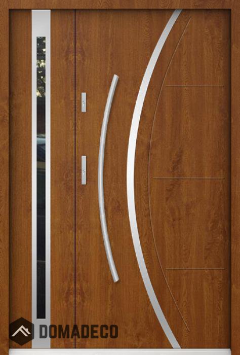 La puerta está hecha de acero inoxidable. En su interior está rellena de espuma de poliuretano PUR y madera. El grosor de la hoja de la puerta es de 55 mm. Posee un Sistema de Sellado Doble: Un sello se encuentra en la parte superior del marco y el otro en la parte de soporte de la hoja de la puerta. Reducen la vibración y protegen su casa de la pérdida de calor. No cambian su volumen bajo la influencia de las condiciones atmosféricas. El marco de la puerta tiene refuerzos antirrobo en partes de bisagras y puntos de cierre.