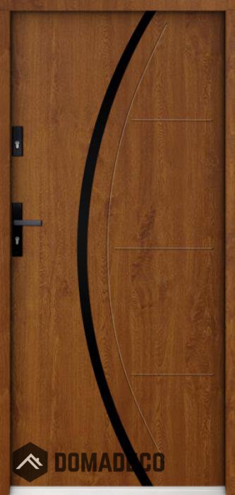 La puerta está hecha de acero inoxidable. En su interior está rellena de espuma de poliuretano PUR y madera. El grosor de la hoja de la puerta es de 55 mm. Posee un Sistema de Sellado Doble: Un sello se encuentra en la parte superior del marco y el otro en la parte de soporte de la hoja de la puerta. Reducen la vibración y protegen su casa de la pérdida de calor. No cambian su volumen bajo la influencia de las condiciones atmosféricas. El marco de la puerta tiene refuerzos antirrobo en partes de bisagras y puntos de cierre.