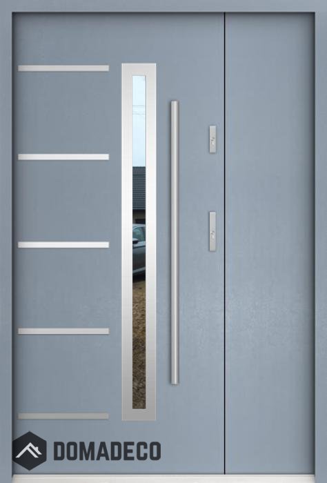La puerta está hecha de acero inoxidable. En su interior está rellena de espuma de poliuretano PUR y madera. El grosor de la hoja de la puerta es de 55 mm. Posee un Sistema de Sellado Doble: Un sello se encuentra en la parte superior del marco y el otro en la parte de soporte de la hoja de la puerta. Reducen la vibración y protegen su casa de la pérdida de calor. No cambian su volumen bajo la influencia de las condiciones atmosféricas. El marco de la puerta tiene refuerzos antirrobo en partes de bisagras y puntos de cierre.