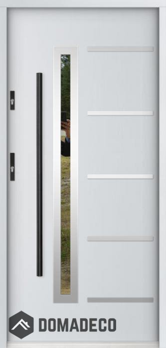 La puerta está hecha de acero inoxidable. En su interior está rellena de espuma de poliuretano PUR y madera. El grosor de la hoja de la puerta es de 55 mm. Posee un Sistema de Sellado Doble: Un sello se encuentra en la parte superior del marco y el otro en la parte de soporte de la hoja de la puerta. Reducen la vibración y protegen su casa de la pérdida de calor. No cambian su volumen bajo la influencia de las condiciones atmosféricas. El marco de la puerta tiene refuerzos antirrobo en partes de bisagras y puntos de cierre.