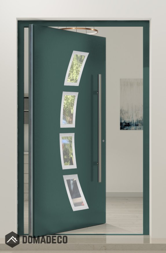 La puerta pivotante exterior moderna de aluminio PIVOT 21A es una solución excepcional para entradas, diseñada para combinar un estilo arquitectónico vanguardista con un rendimiento y una durabilidad excepcionales. Perfectamente adecuada para aplicaciones residenciales y comerciales contemporáneas, esta puerta redefine el concepto de entrada al ofrecer un diseño elegante y minimalista, combinado con un sofisticado mecanismo de bisagra pivotante que crea una experiencia de apertura dinámica y elegante.