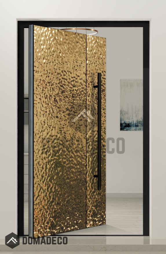 PIVOT B2 - puerta pivotante de aluminio recubierta con chapa de acero inoxidable dorado