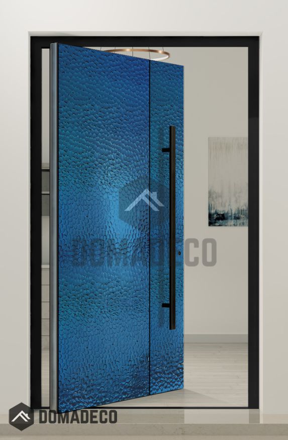 PIVOT B3 - puerta pivotante de aluminio recubierta con chapa de acero inoxidable azul