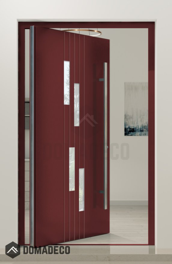 La puerta frontal pivotante de aluminio PIVOT C25 con cuatro ventanas es una solución de entrada sofisticada y contemporánea diseñada para elevar la estética y la funcionalidad de cualquier hogar moderno o edificio comercial. Combinando un diseño arquitectónico elegante con materiales y ingeniería avanzados, esta puerta ofrece un equilibrio perfecto entre estilo, durabilidad y rendimiento, lo que la convierte en una excelente opción para aquellos que buscan causar una primera impresión audaz.