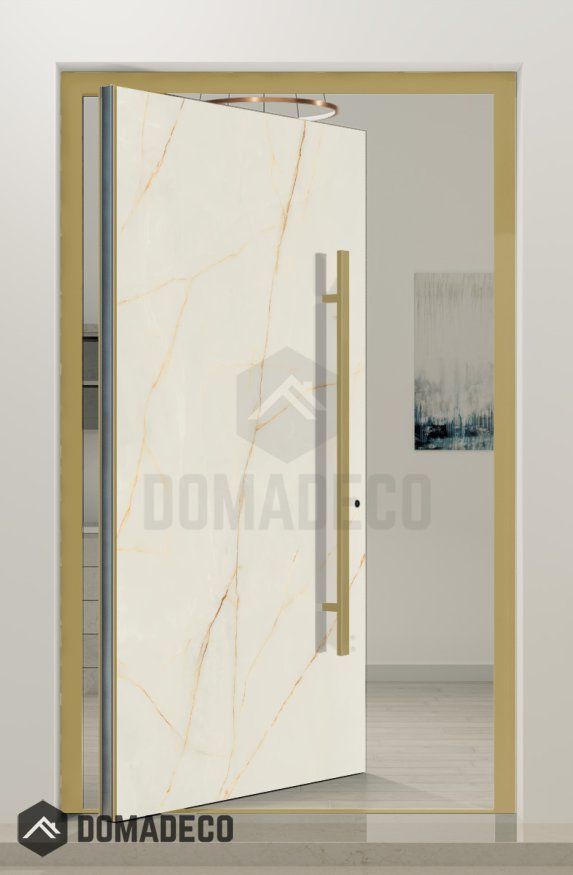 PIVOT Cristallo - puerta pivotante de aluminio revestida de cuarzo sinterizado Cristallo