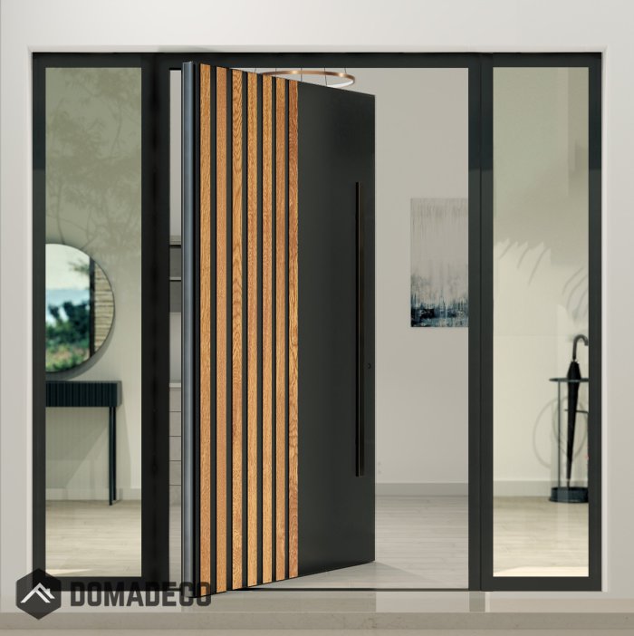 Prepárese para ser cautivado por la pura elegancia y funcionalidad de la Puerta Pivotante con Luz Lateral Izquierda y Derecha de Domadeco. Esta impresionante solución de entrada es una verdadera obra maestra del diseño moderno, que combina a la perfección forma y función para crear una primera impresión impresionante para su hogar.