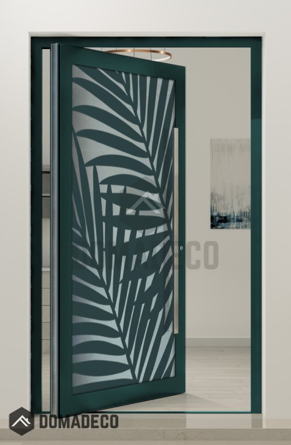 Entre en un mundo de elegancia y sofisticación sin parangón con la puerta pivotante de aluminio con frente de cristal PIVOT G3, que incorpora un fascinante panel decorativo en forma de hoja. Esta puerta excepcional es una verdadera obra maestra del diseño moderno, que combina a la perfección la tecnología de vanguardia con una estética exquisita para crear una sorprendente declaración arquitectónica que transformará cualquier espacio en una obra de arte. El elegante marco de aluminio complementa armoniosamente el encanto transparente del frente de cristal, mientras que el intrincado panel decorativo de hojas añade un toque de belleza y encanto inspirado en la naturaleza, convirtiéndola en una adición verdaderamente única y cautivadora a su esquema de diseño interior.