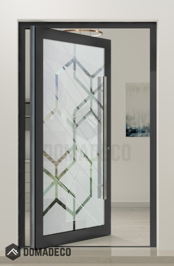 PIVOT Glass S13 - puerta pivotante de aluminio esmerilado con decoración transparente
