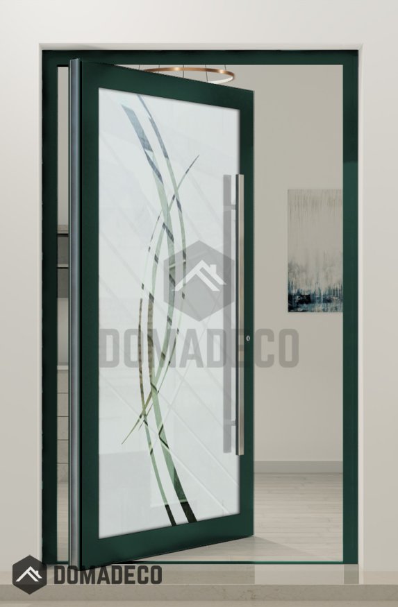 PIVOT Glass S2 - puerta pivotante de aluminio esmerilado con dos franjas transparentes