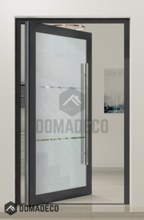 PIVOT Glass S2 - puerta pivotante de aluminio esmerilado con dos franjas transparentes