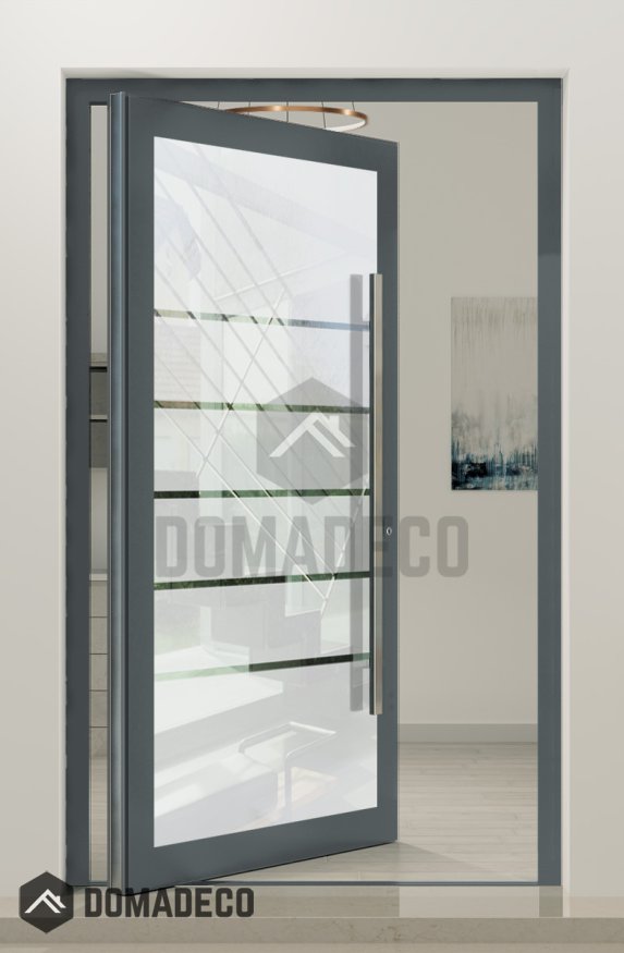 PIVOT Glass S5 - puerta pivotante esmerilada de aluminio con cinco bandas transparentes