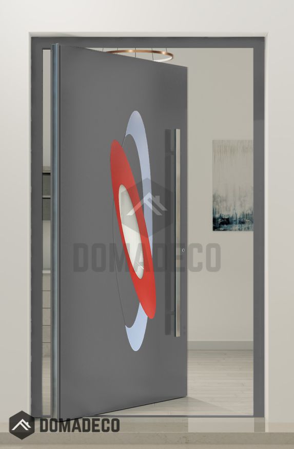 PIVOT INLAY - Puerta pivotante de aluminio con óvalos de colores.