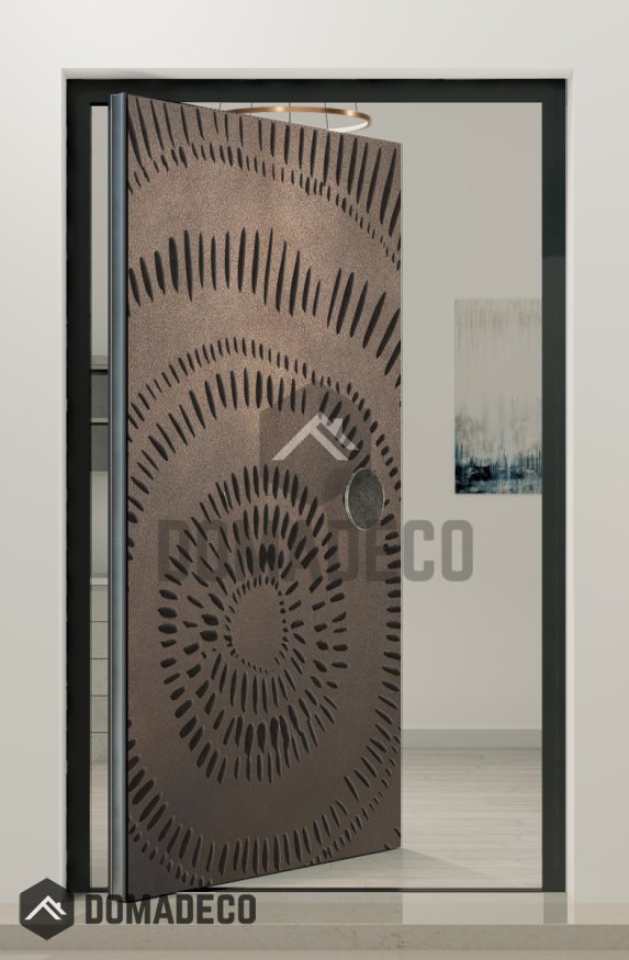 PIVOT M11 - puerta pivotante con textura de bronce de metal fresado