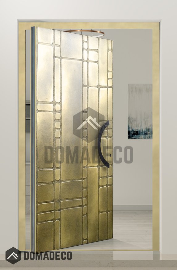 PIVOT M18 - puerta pivotante de aluminio con textura de latón amarillo de metal fresado