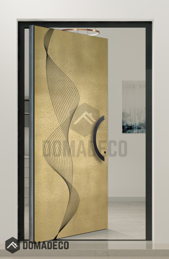 PIVOT M26 - puerta pivotante de aluminio con puerta con textura de latón amarillo de metal fresado
