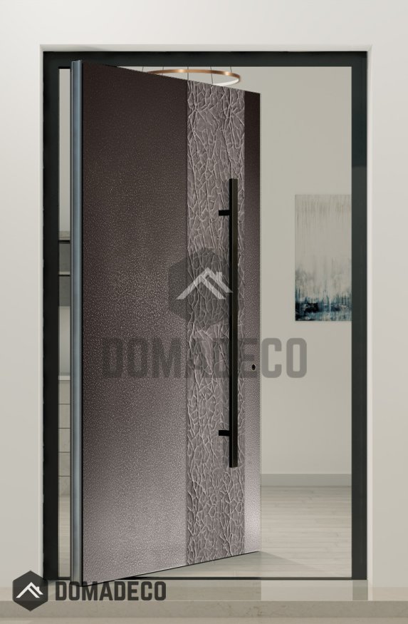 PIVOT M27 - puerta pivotante de aluminio con puerta de textura marrón de metal fresado