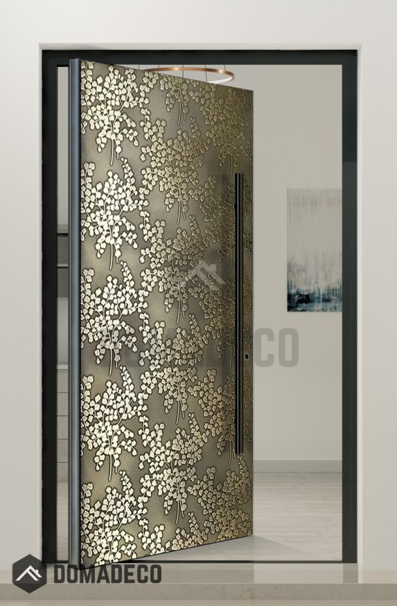 PIVOT M28 - puerta pivotante de aluminio con textura de latón de metal fresado.