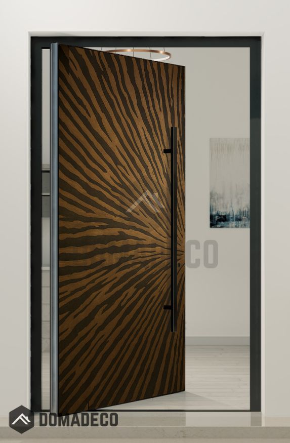PIVOT M29 - puerta pivotante de aluminio con textura marrón de metal fresado