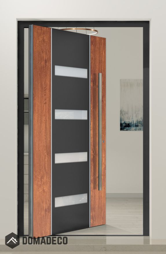PIVOT V09 - puerta pivotante de seguridad de aluminio con decoración de madera
