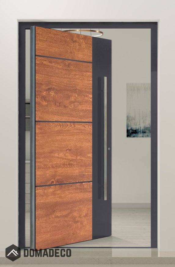 PIVOT V36 - puerta de entrada pivotante de aluminio con decoración de madera