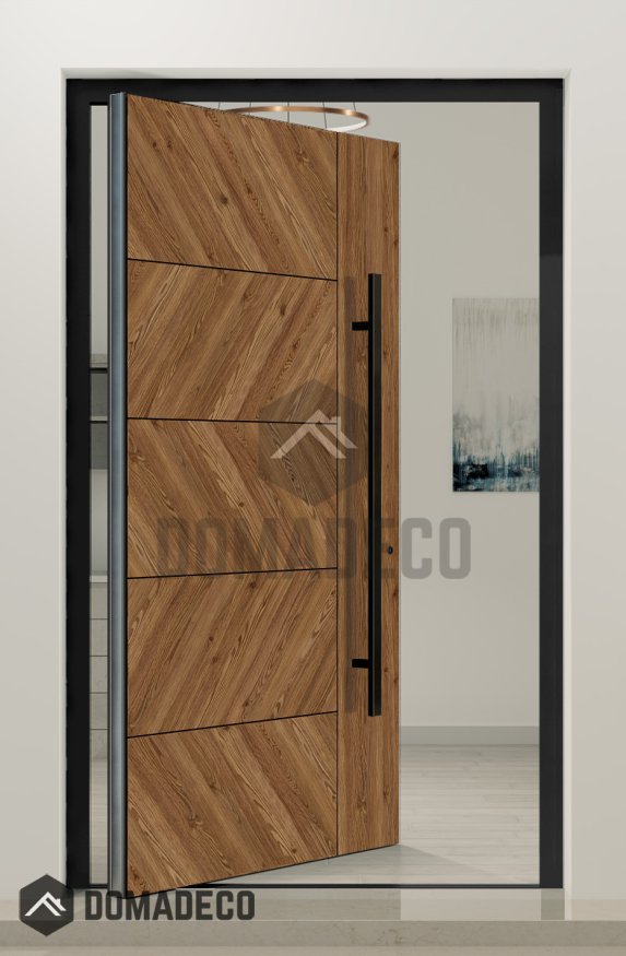 PIVOT WOODLINE 4 - Puerta pivotante con panel Creek Larch de laminado de alta presión imitación madera.