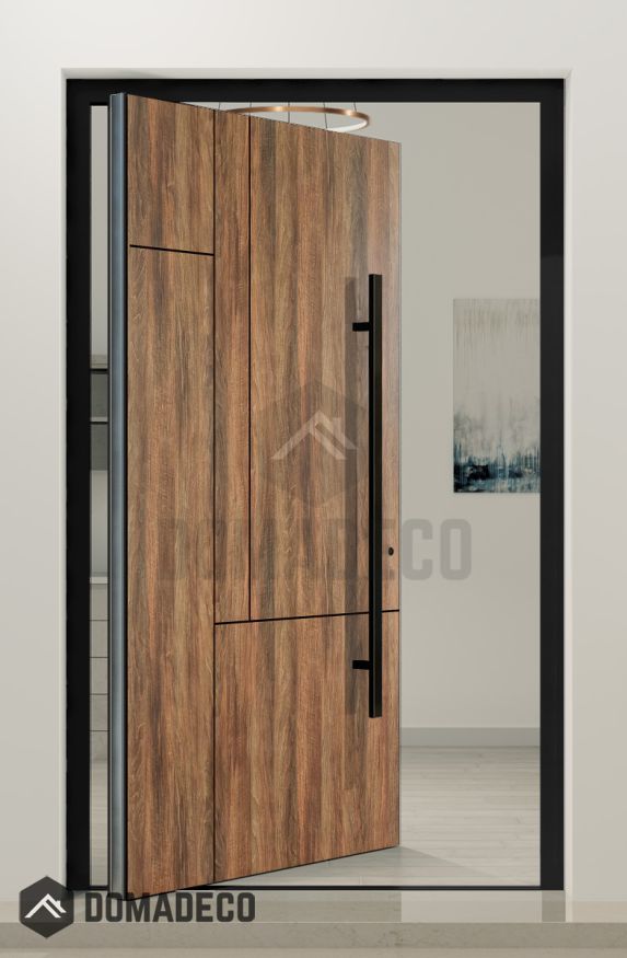PIVOT WOODLINE 1 - puerta pivotante de aluminio con laminado de alta presión nogal