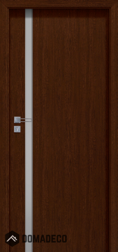 La puerta está construida con un conjunto de rieles y montantes de madera con dos tableros HDF cubiertos con chapa natural. El relleno consta de un aglomerado sólido. Los modelos A01, A02, A03 están equipados con un vidrio templado blanco mate, de 6 mm de espesor. El borde superior de la hoja de la puerta tiene un descuento en el sistema rebajado.