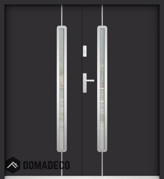 La puerta está hecha de acero inoxidable. En su interior está rellena de espuma de poliuretano PUR y madera. El grosor de la hoja de la puerta es de 55 mm. Posee un Sistema de Sellado Doble: Un sello se encuentra en la parte superior del marco y el otro en la parte de soporte de la hoja de la puerta. Reducen la vibración y protegen su casa de la pérdida de calor. No cambian su volumen bajo la influencia de las condiciones atmosféricas. El marco de la puerta tiene refuerzos antirrobo en partes de bisagras y puntos de cierre.