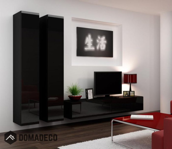 1 x Gabinete de TV - 30/180/42 cm - 11,8"/70,9"/16,5" dos frontales brillantes, puerta con sistema de apertura "PULSAR PARA ABRIR",