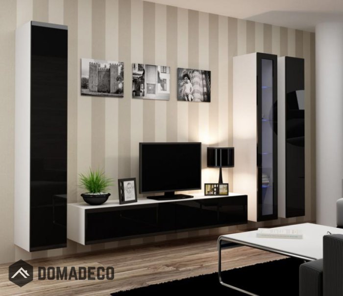 1 x Gabinete de TV - 30/180/42 cm - 11,8"/70,9"/16,5" - frontales brillantes, puertas con sistema de apertura "PULSAR PARA ABRIR",