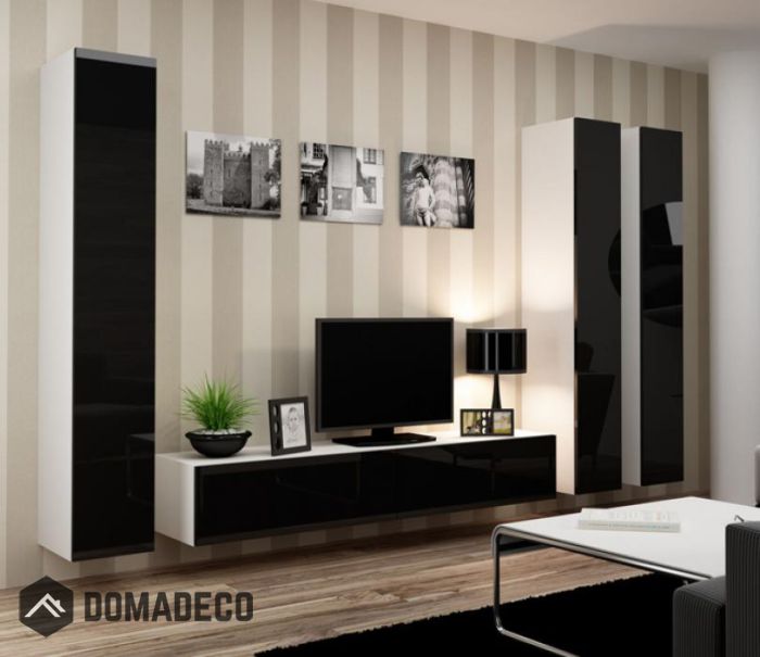 1 x Gabinete de TV - 30/180/42 cm - 11,8"/70,9"/16,5" dos frontales brillantes, puerta con sistema de apertura "PULSAR PARA ABRIR",