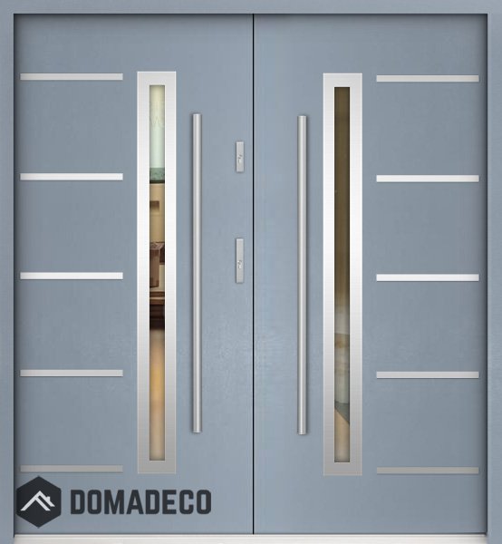 La puerta está hecha de acero inoxidable. En su interior está rellena de espuma de poliuretano PUR y madera. El grosor de la hoja de la puerta es de 55 mm. Posee un Sistema de Sellado Doble: Un sello se encuentra en la parte superior del marco y el otro en la parte de soporte de la hoja de la puerta. Reducen la vibración y protegen su casa de la pérdida de calor. No cambian su volumen bajo la influencia de las condiciones atmosféricas. El marco de la puerta tiene refuerzos antirrobo en partes de bisagras y puntos de cierre.