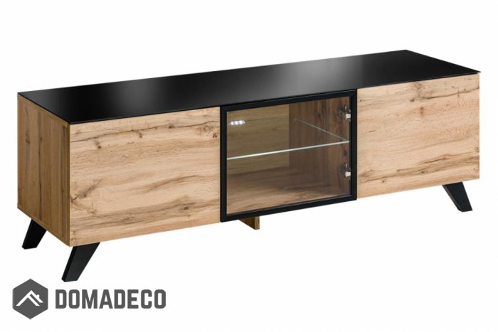 Gabinete alto de pared: puertas acristaladas, detrás de ellas 2 estanterías de vidrio con Led. Debajo de las puertas habituales, detrás de ellas 1 repisa habitual (2 espacios). Estante. Soporte de TV: 2 solapas habituales, detrás de ellas 1 agujero. En la aleta central acristalada, detrás de ella 1 estante de vidrio con Led. Armario de pared bajo: 2 puertas parcialmente acristaladas, detrás de ellas 2 estantes habituales (3 espacios).