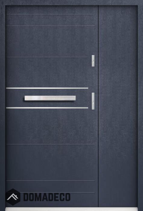 La puerta está hecha de acero inoxidable. En su interior está rellena de espuma de poliuretano PUR y madera. El grosor de la hoja de la puerta es de 55 mm. Posee un Sistema de Sellado Doble: Un sello se encuentra en la parte superior del marco y el otro en la parte de soporte de la hoja de la puerta. Reducen la vibración y protegen su casa de la pérdida de calor. No cambian su volumen bajo la influencia de las condiciones atmosféricas. El marco de la puerta tiene refuerzos antirrobo en partes de bisagras y puntos de cierre.