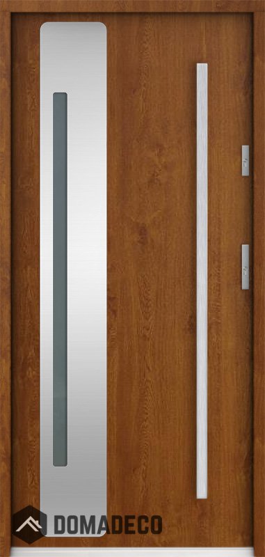 La puerta está hecha de acero inoxidable. En su interior está rellena de espuma de poliuretano PUR y madera. El grosor de la hoja de la puerta es de 55 mm. Posee un Sistema de Sellado Doble: Un sello se encuentra en la parte superior del marco y el otro en la parte de soporte de la hoja de la puerta. Reducen la vibración y protegen su casa de la pérdida de calor. No cambian su volumen bajo la influencia de las condiciones atmosféricas. El marco de la puerta tiene refuerzos antirrobo en partes de bisagras y puntos de cierre.